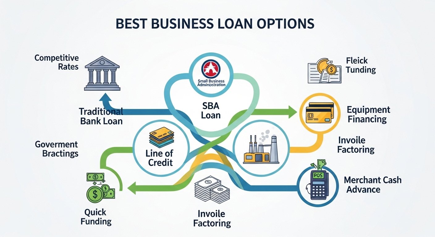 Traditional banks offer established lending. Online lenders provide fast approval. SBA loans offer government backing. Alternative lenders provide flexible options. Choose based on your business needs.